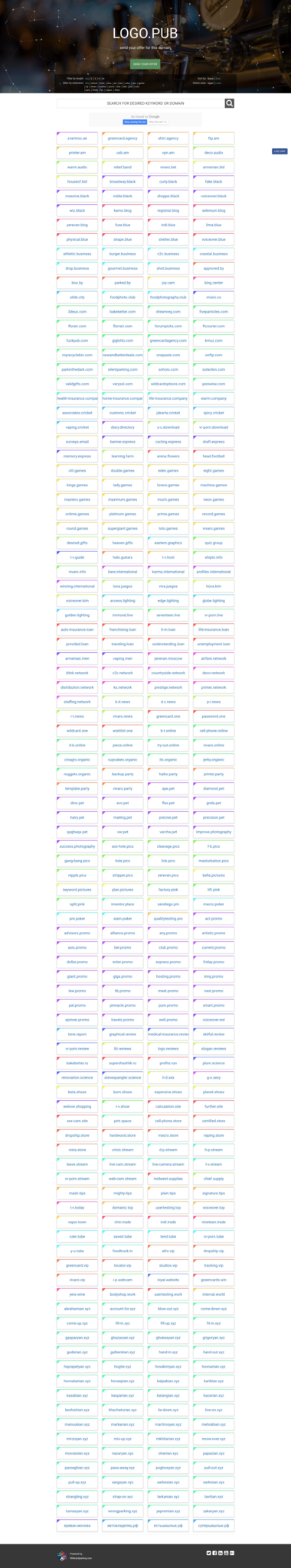 Present your domain portfolio to your visitors using professionally designed portfolio list, showing every domain in a separate card colored by domain extension, allowing your visitors to filter your portfolio by domain length and extension as well as sort the list alphabetically or by extensions, while showing all in uppercase or lowercase. Includes a search bar to find a specific domain in portfolio.
