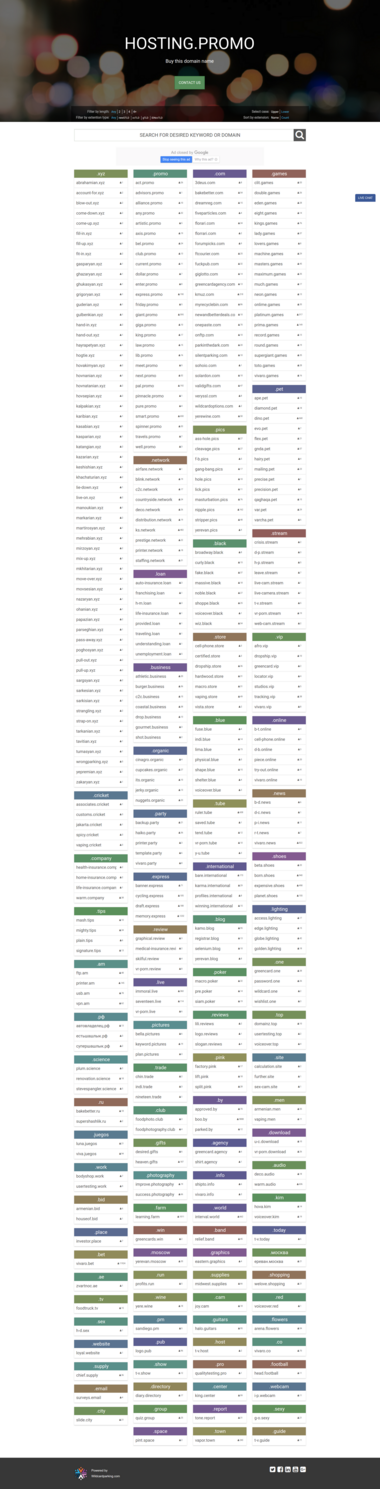 Same as template "Portfolio Cards", it presents your domain portfolio to your visitors using professionally designed portfolio list, showing domains grouped by extensions in separate lists, each colored differently, allowing your visitors to filter your portfolio by domain length and extension type as well as sort the list alphabetically or by extensions, while showing all in uppercase or lowercase. Includes a search bar to find a specific domain in portfolio.