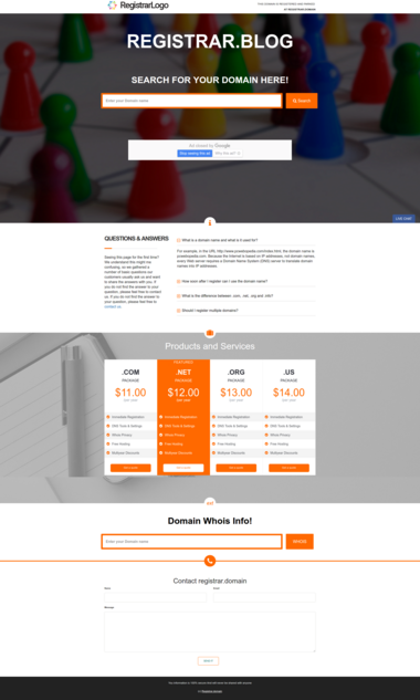 Templates of Registrar Template series are made specifically for domain registrars to display for every client's domains pointed to default name servers, promoting registrar services and offers while domains are not in use.
